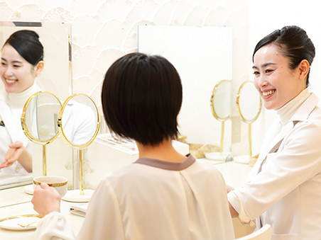 SFC(スキンフィットネスカウンセラー有資格者)からお客様の肌ストーリーの問診から当店での改善アプローチ方法、 期間目安など細かくカウンセリング